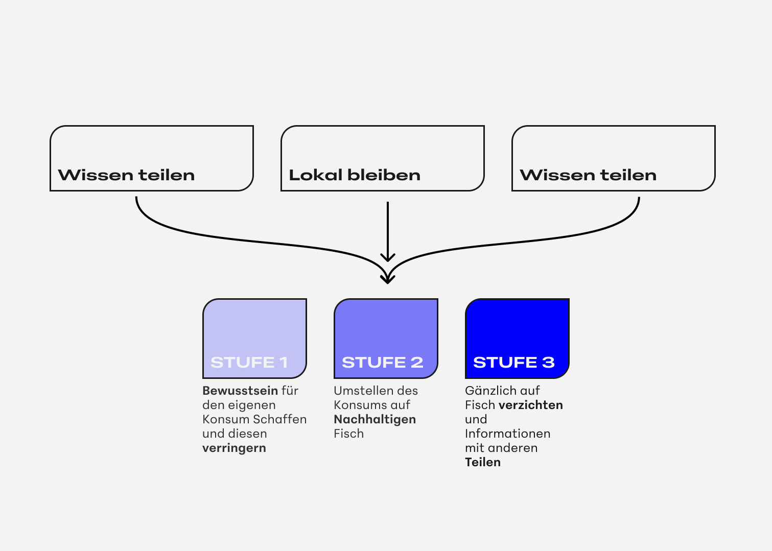 Personality groups were created to add a feeling of belonging as well as recommend steps which are crafted for the respective group. Challenges are recommended which correspond to the user's current position regarding fish eating. This was based on extensive user research.